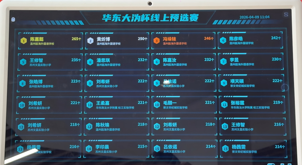 云上绳飞逐梦想,华东少年竞锋芒。本次比赛,全程运用大沩“AI运动吧”智慧体育设备,六校在各自学校同时开赛,江浙沪三地联动,云端PK!共同开启校企深度合作的新篇章。
