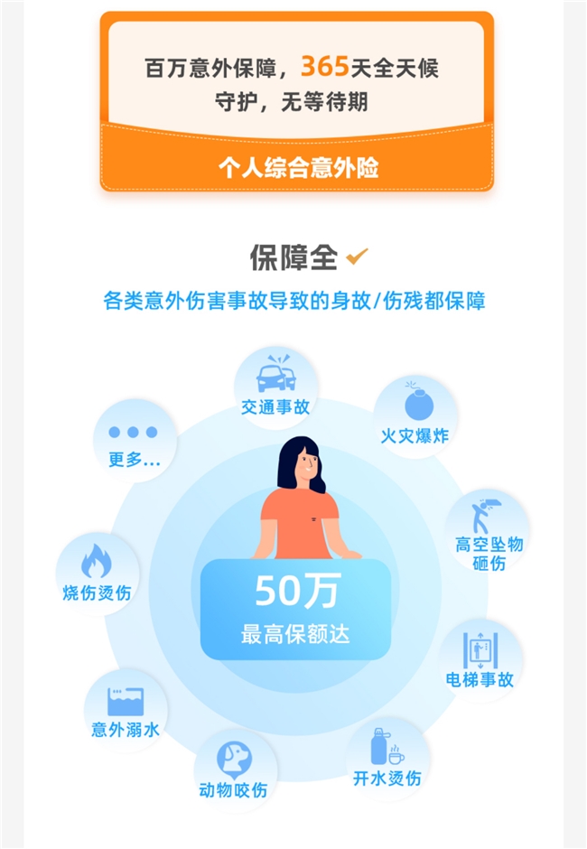 中华如意保.个人综合意外险百万保障,365天全天候守护!