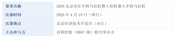 近日,首程控股宣布为持股股东提供“2026北京亦庄半程马拉松暨人形机器人半程马拉松”参赛直通名额,引发市场关注。作为全球少见将人形机器人与半程马拉松结合的赛事,本次活动不仅是一场体育竞速,更是展示具身智能技术与机器人产业发展的重要平台。